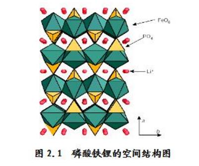 磷酸鐵鋰(LiFePO4)具有橄欖石結(jié)構(gòu),為稍微扭曲的六方密堆積,其空間群是Pmnb型,晶型結(jié)構(gòu)如圖2.1所示